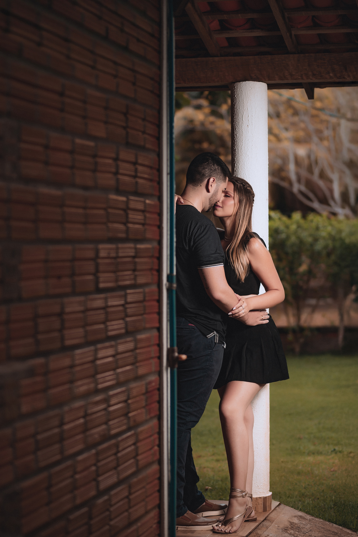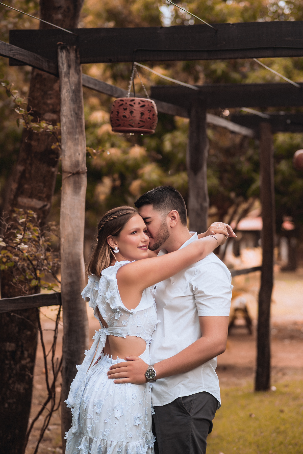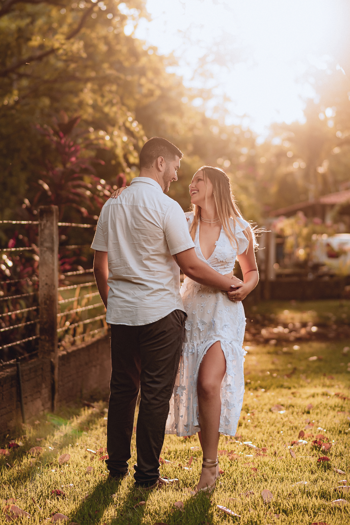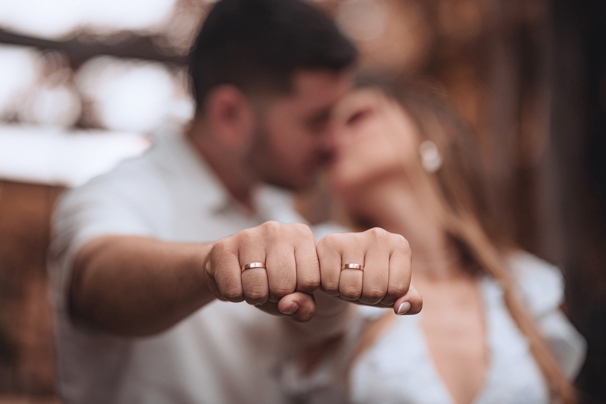 Quando a chuva finalmente deu uma trégua, iniciamos o ensaio. No começo, todos estavam se acostumando com o clima e as câmeras, mas bastou um tempinho para o casal se soltar. E que espetáculo! Cada sorriso, cada troca de olhar, cada gesto de carinho foi capturado com muita leveza.