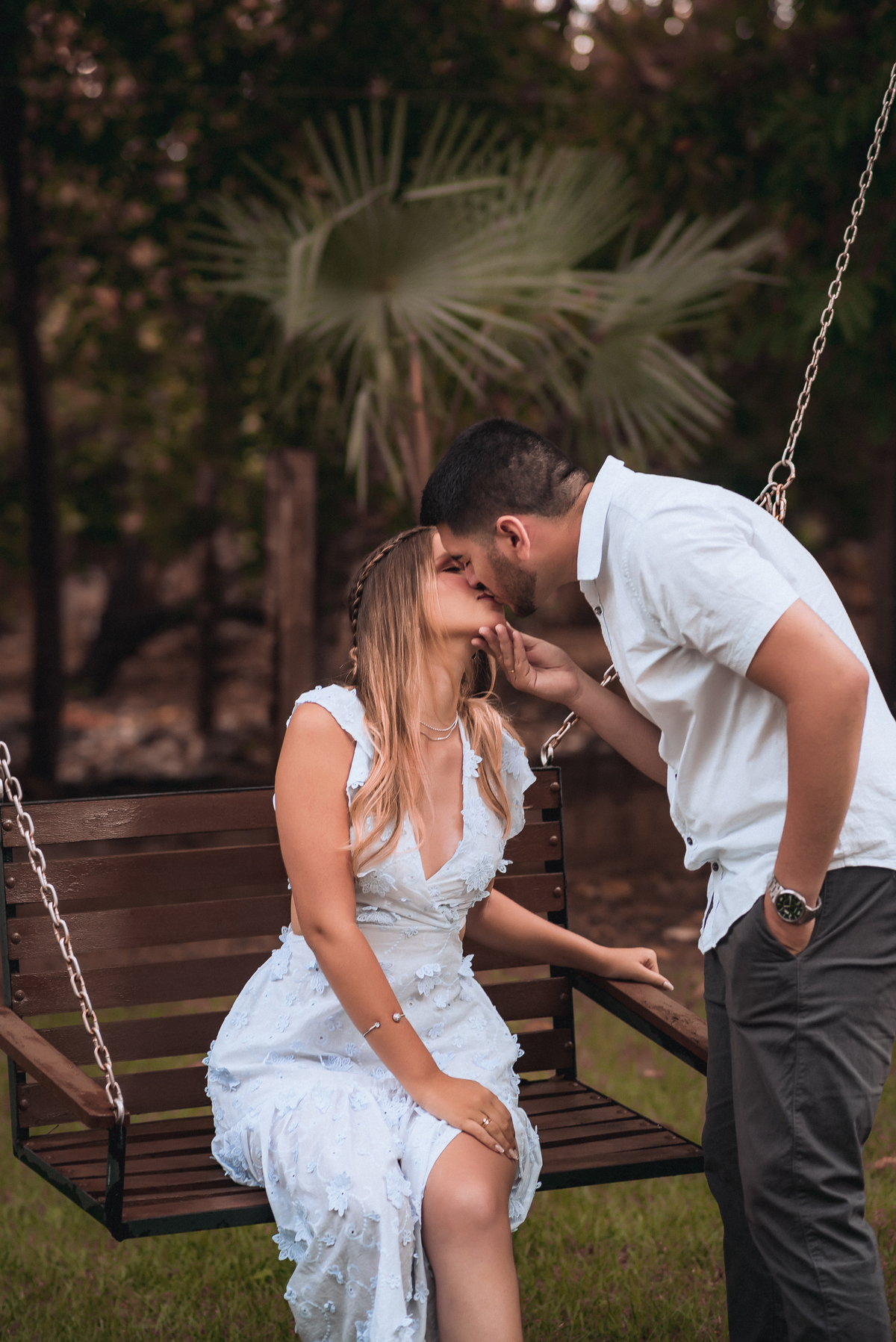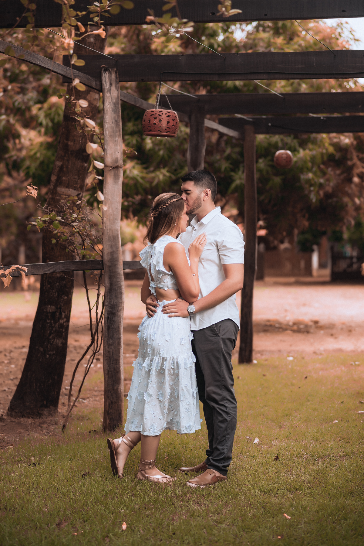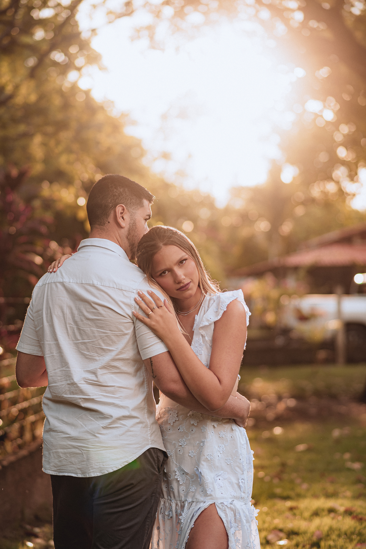 Quando a chuva finalmente deu uma trégua, iniciamos o ensaio. No começo, todos estavam se acostumando com o clima e as câmeras, mas bastou um tempinho para o casal se soltar. E que espetáculo! Cada sorriso, cada troca de olhar, cada gesto de carinho foi capturado com muita leveza.