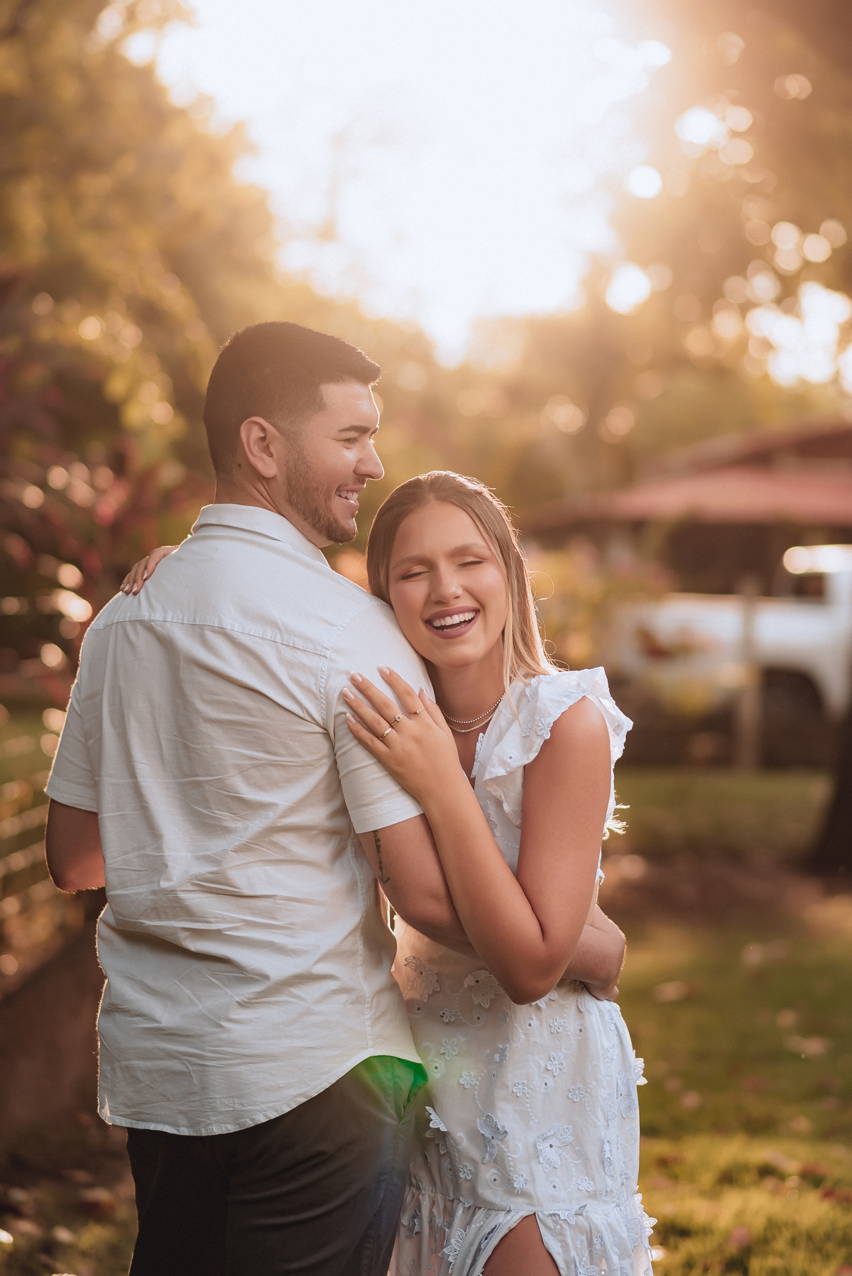 O dia começou com uma chuva que nos deixou apreensivos. Será que seria possível realizar o ensaio? Depois de algumas mensagens trocadas, seguimos confiante. Ao chegar, o cenário ainda era de chuva e céu nublado, e enquanto aguardamos acalmar, compartilhamos momentos descontraídos – até uma pausa para comer azeitonas no sereno virou história! Enquanto isso, Luma e Astrogildo aguardavam ansiosos dentro do carro.